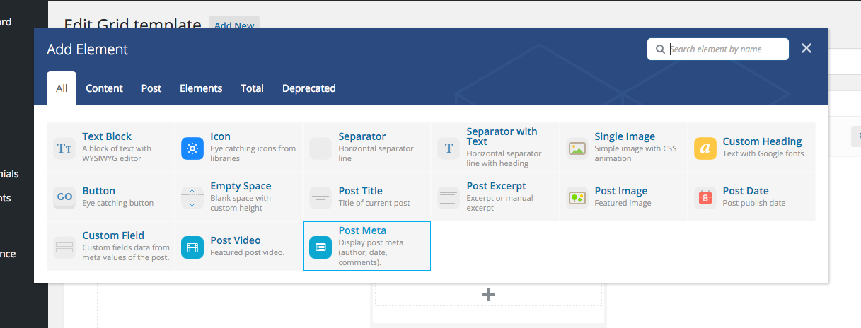 - Added New “Post Meta” option for the Visual Composer Post Grid module that will display date, author and comments with the same design style as the blog – screenshot