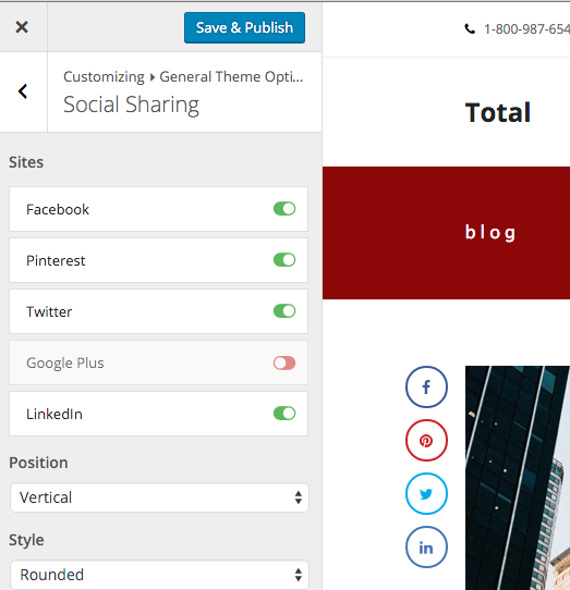 - Updated Visual Composer Social sharing Customizer setting so you can re-order the links in your preferred order – screenshot
