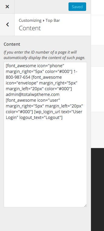 - Updated Moved Topbar content field into it’s own tab and made the textarea larger so it’s easier to modify – screenshot