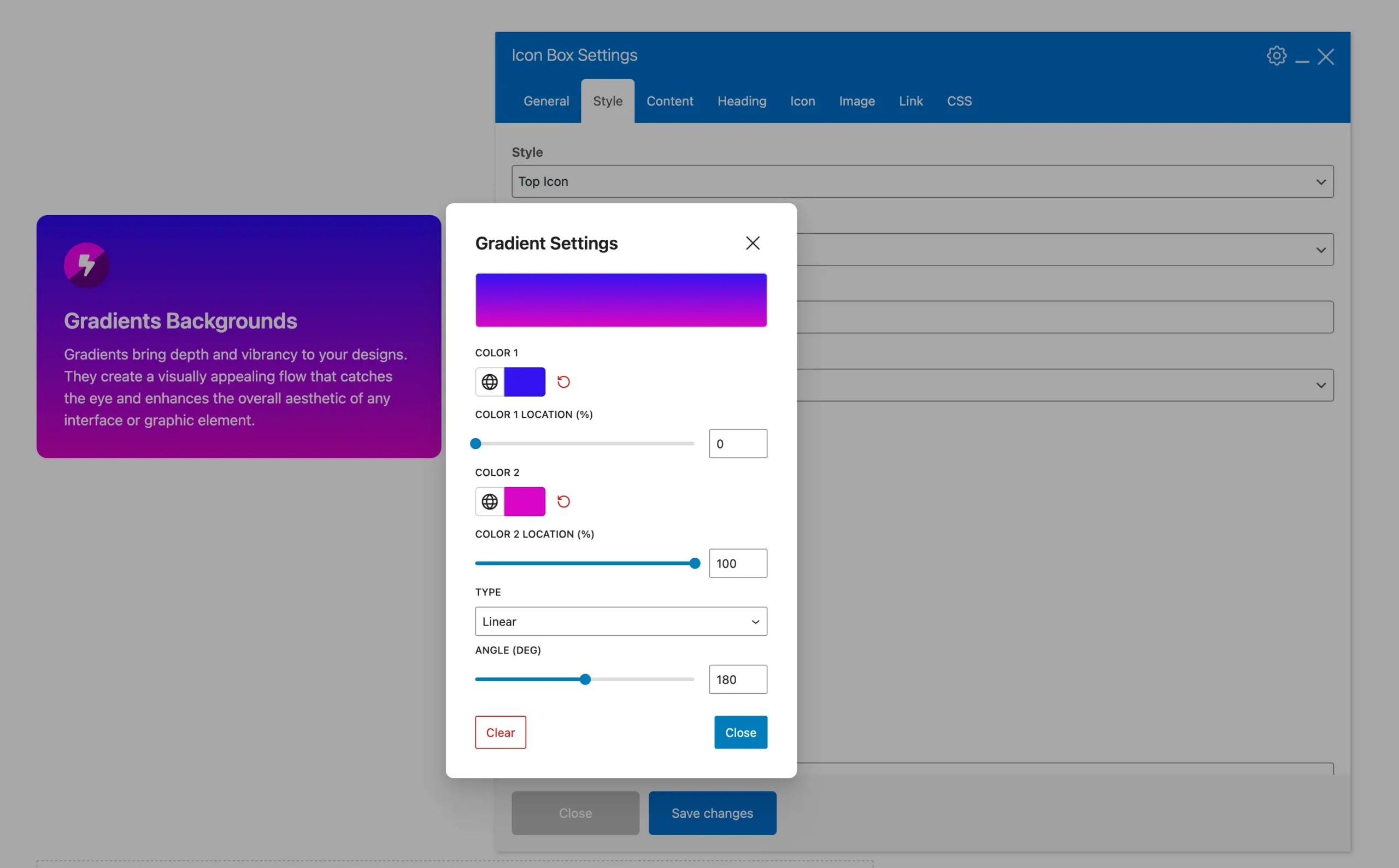 Enhance your designs with new gradient options. Apply multi-tone gradients to backgrounds, text, and elements for a modern, professional look. Gradients are added to the most important Customizer and theme element fields, not every color option.